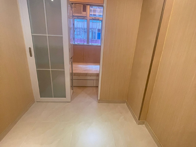 一房一廳間隔,有雙人床及床褥與掛衣架,環境舒適,歡迎約睇